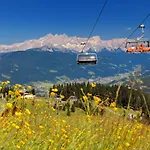 The property is a 52-minute drive from W. A. Mozart airport and approximately a 25-minute walk from the Snow Space Flachau.